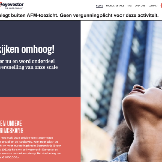 De Europese crowdfundingwetgeving (ECSPR) verbiedt vergunde platforms zoals Eyevestor om hun eigen publieke financieringsronde via het eigen platform aan te bieden. Daarom loopt deze investeringsronde via een aparte website, met gebruik van een uitzondering op de prospectusplicht die onder MiFID II nog steeds mogelijk is voor publieke bedrijven.