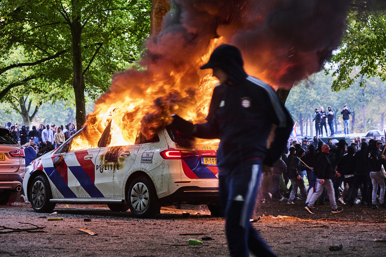 De juryprijs voor de Nieuwsfoto van het Jaar 2025 is toegekend aan freelance fotograaf Nico Garstman. Hij overtuigde de jury met een indringend beeld van de rellen op het Malieveld in Den Haag, waar een demonstratie tegen het asielbeleid in september volledig ontspoorde. De foto verbeeldt de chaos op krachtige wijze, met een brandende politieauto als centraal en confronterend element.