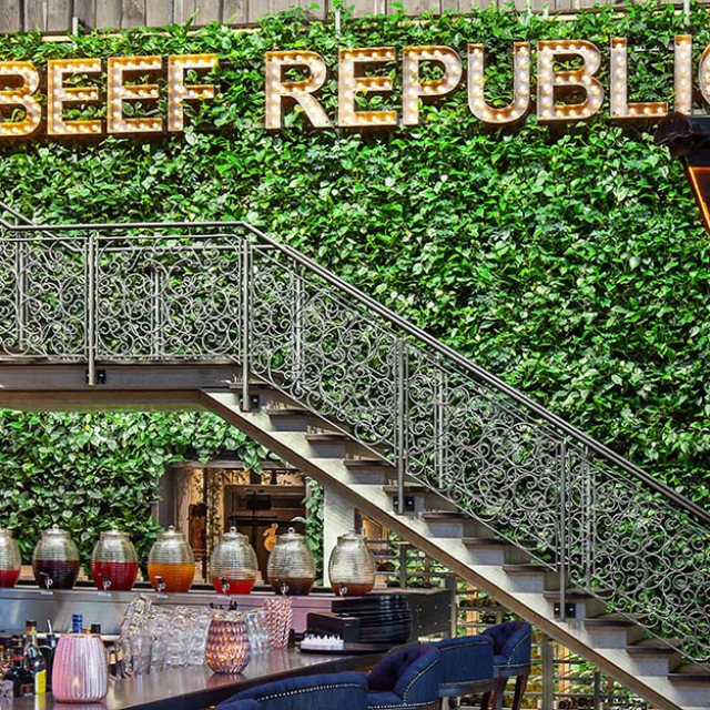 In Keulen werd het Timberjacks-restaurant onderscheiden voor zijn 41 m² grote plantenwand, gerealiseerd met Mobilane’s LivePanel Indoor-systeem. Dit flexibele systeem maakt het mogelijk om openingen voor doorgangen en trapopgangen te integreren in het ontwerp. De wand verbetert de akoestiek en het binnenklimaat, wat de klantbeleving aanzienlijk verhoogt.