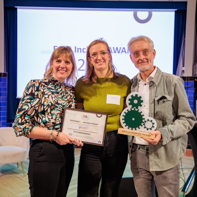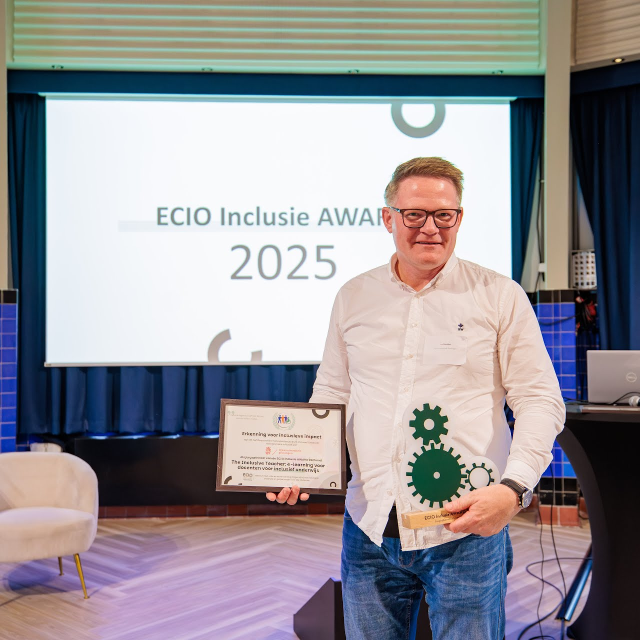 Wat maakt onderwijs écht inclusief? Hoe vertaal je dat naar de praktijk? Met de ECIO Inclusie Award Verkiezing 2025 geeft ECIO een podium aan initiatieven die bijdragen aan inclusiever onderwijs en een eerlijke start op de arbeidsmarkt voor jongeren met een ondersteuningsbehoefte. De verkiezing stimuleert de uitvoering van het VN-verdrag Handicap in de onderwijspraktijk. Uit de vele inspirerende inzendingen zijn zes finalisten geselecteerd, die waardevolle oplossingen bieden voor uiteenlopende uitdagingen, van toegankelijke leeromgevingen tot innovatieve ondersteuning voor studenten met diverse ondersteuningsbehoeften. Gisterenmiddag werden de winnaars van de ECIO Inclusie Award 2025 bekendgemaakt: de juryprijs ging naar Rijksuniversiteit Groningen, en de publieksprijs werd toegekend aan Hogeschool Utrecht. Fontys Hogeschool kreeg een eervolle vermelding.