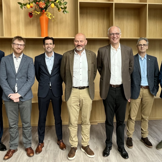 Op de foto onder v.l.n.r.: Eus de Haas, Job Steendam, Stefan Braat, Jos van Uden, Hugo Loudon, Lucas Theeuwes en Joop Wervers
